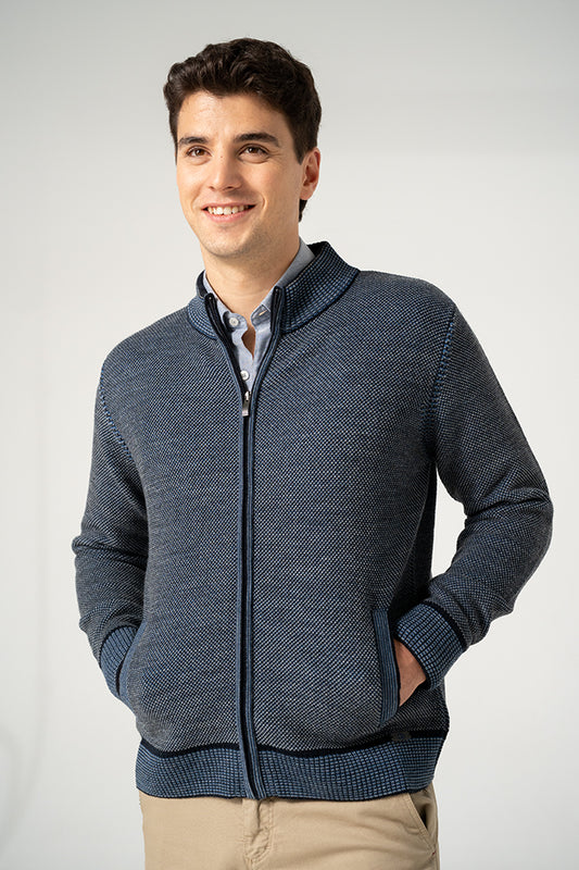 Knitted Full Zip Cardigan - Navy