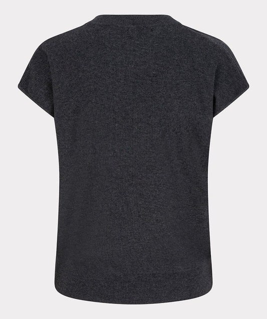Ribbed Short Sleeve Top with Studs - Dark Grey Melange