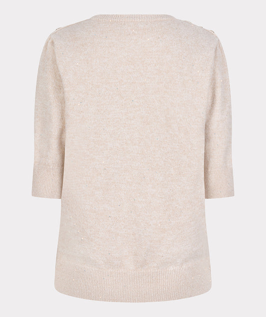 EsQualo Gathered Sleeve Sequin Sweater - Sand Melange