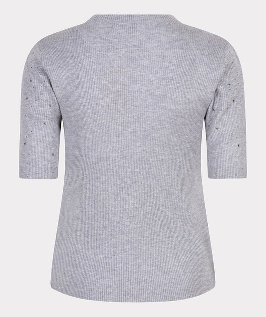 Ribbed Short Sleeve Top with Studs - Light Grey Melange