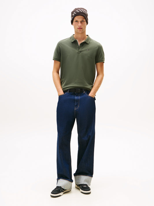 Flag Slim Placket Polo Shirt - Pewter Green