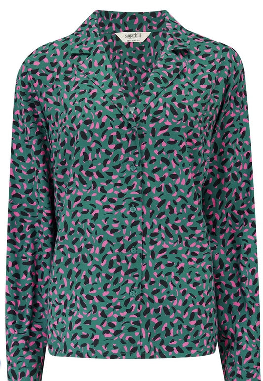 Georgia Mini Shirt Dress - Green, Layered Spot