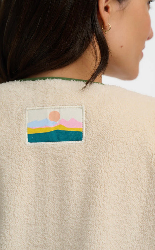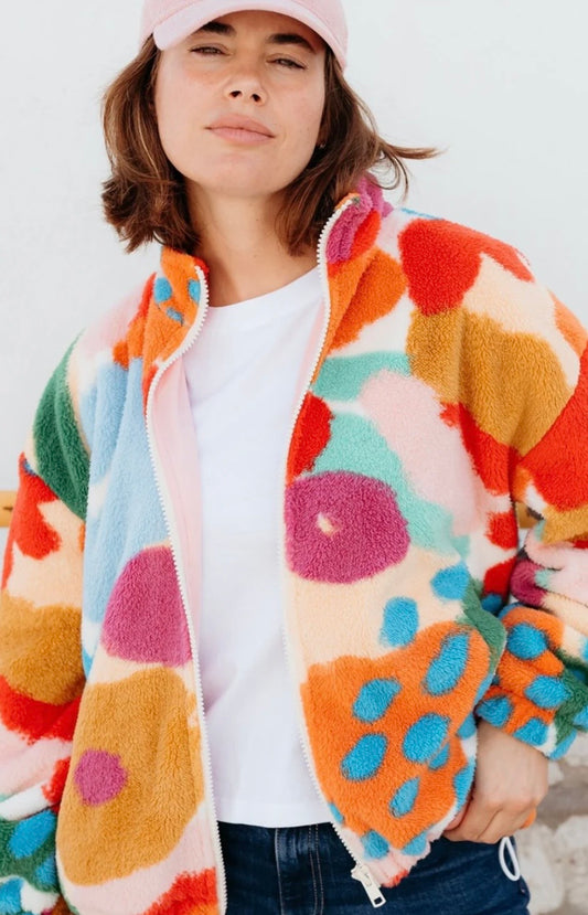 Hartley Zip Up Fleece - Off White/Multi, Abstract Floral