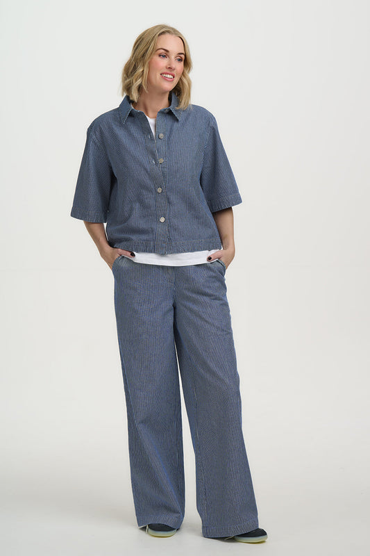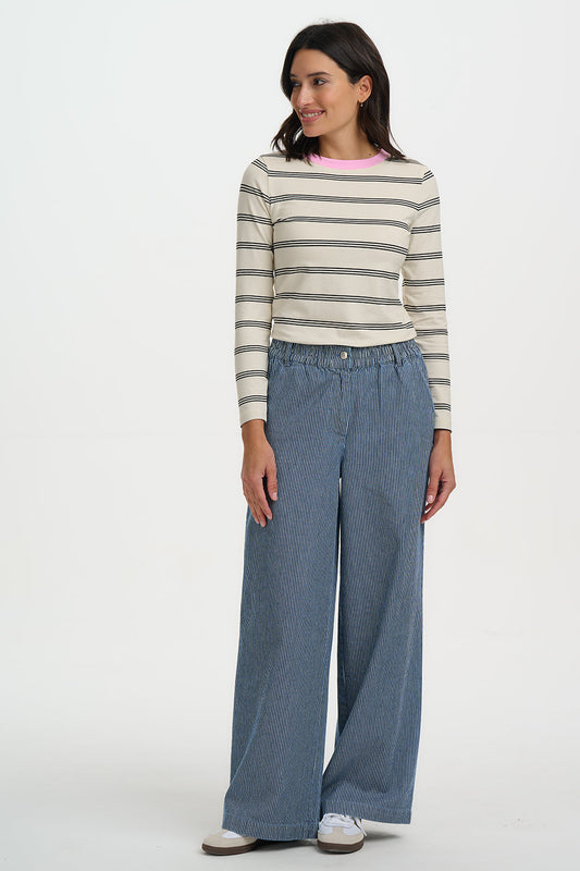 Fifi Wide Leg Trousers - Blue Stripe Denim