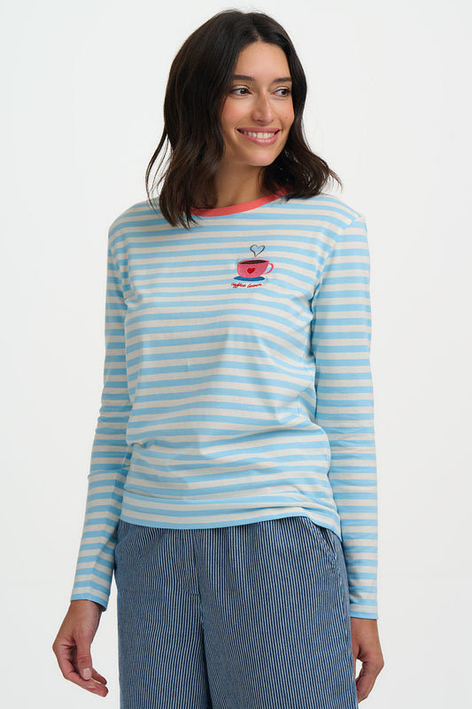Brunswick Jersey Top - Off White/Blue, Coffee Cup