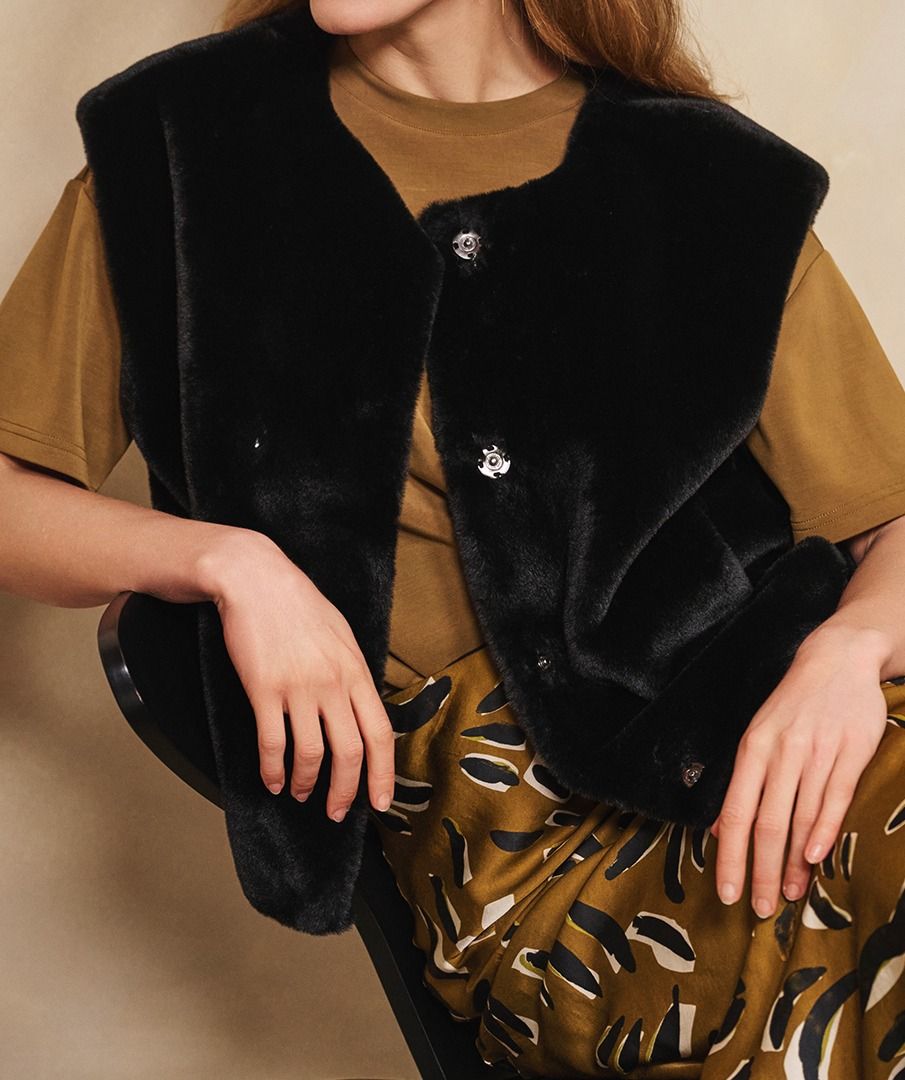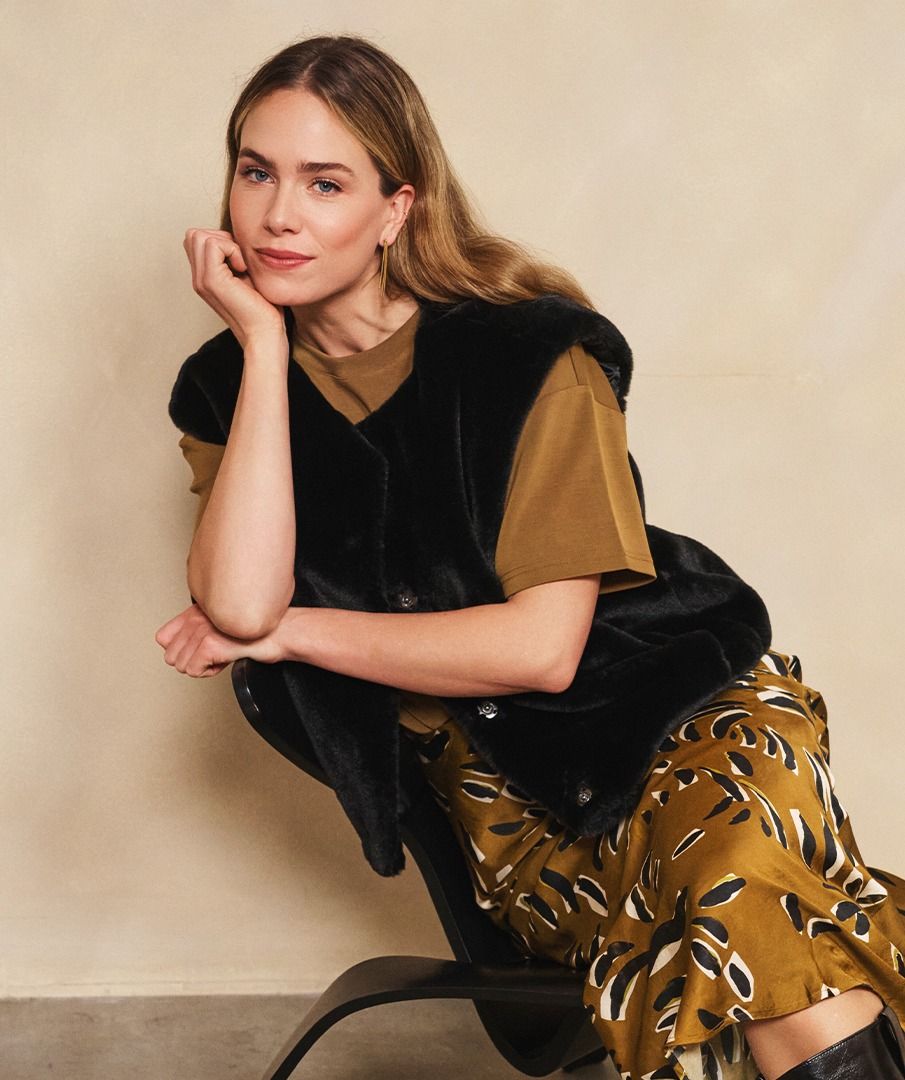 Soft and warm gilet with snaps. The stylish way to stay warm through the fall! Model is 1.73m and wears size S.