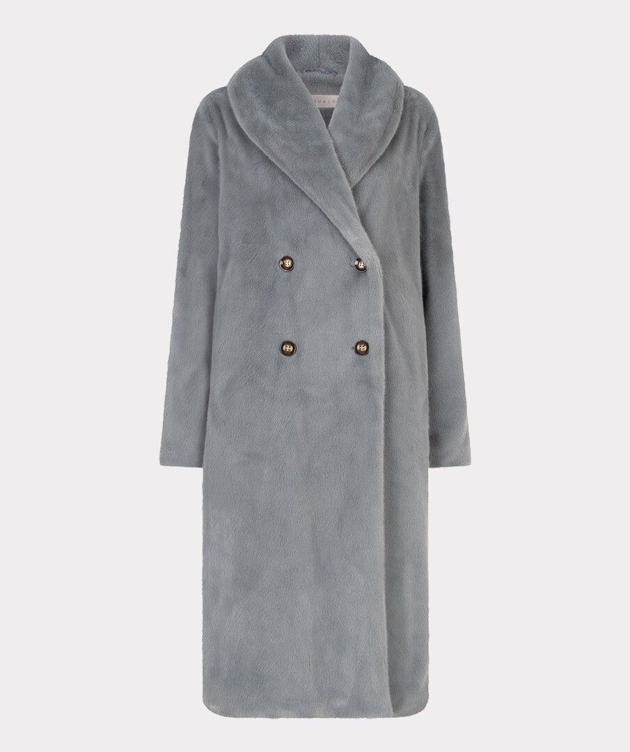 Soft warm double breasted fake fur coat. The coat is available in different colors and is a stylish addition to your fall looks.
