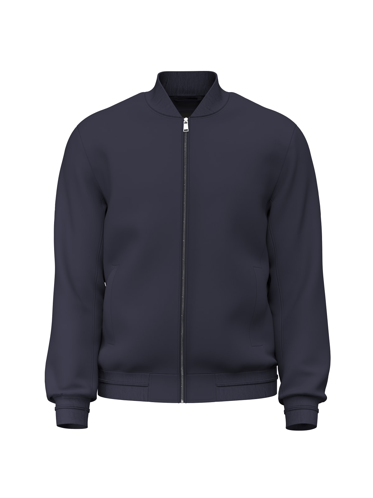 Varsity jacket. Bomber collar. Long sleeves. Side pockets. Zip fastening. The model is wearing size M. Total...