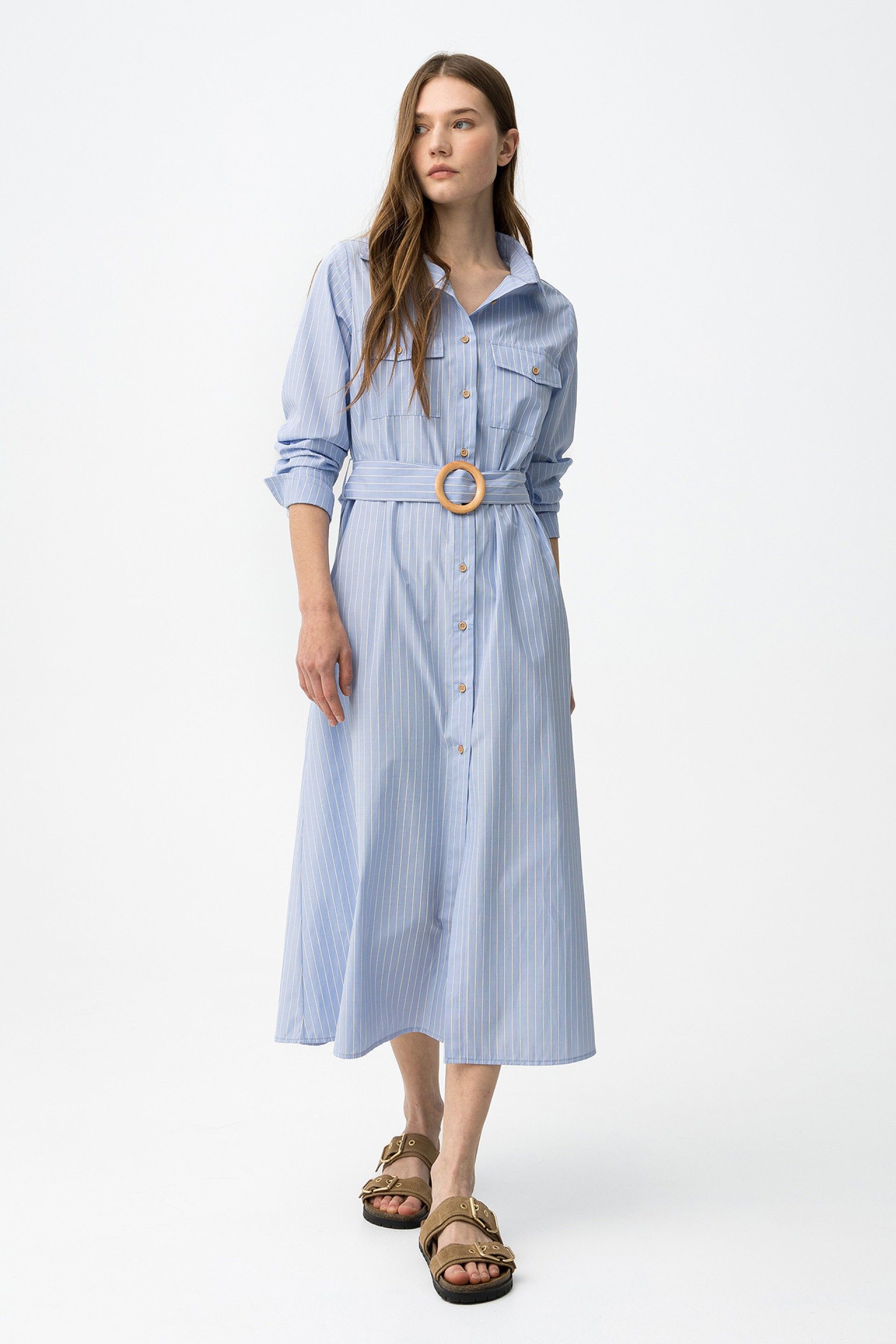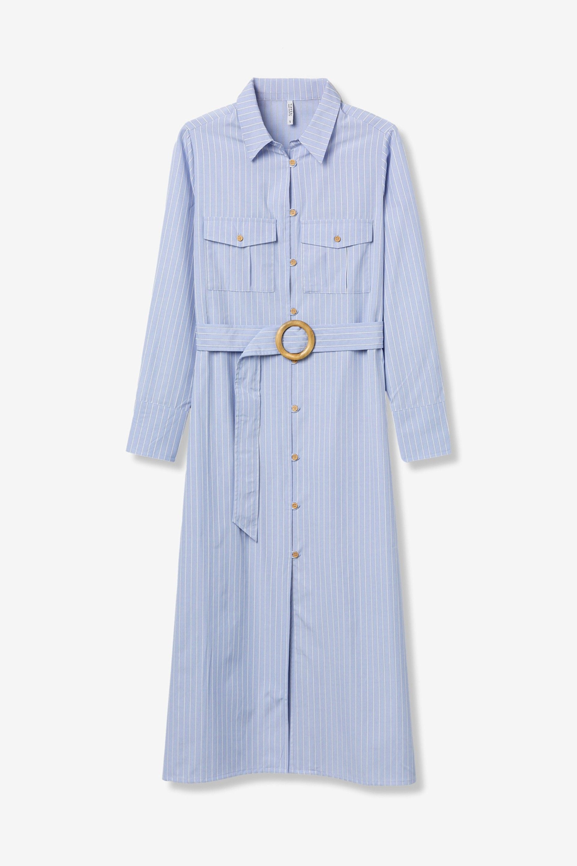 'Dove' Pinstripe Midi Dress - Baby Blue