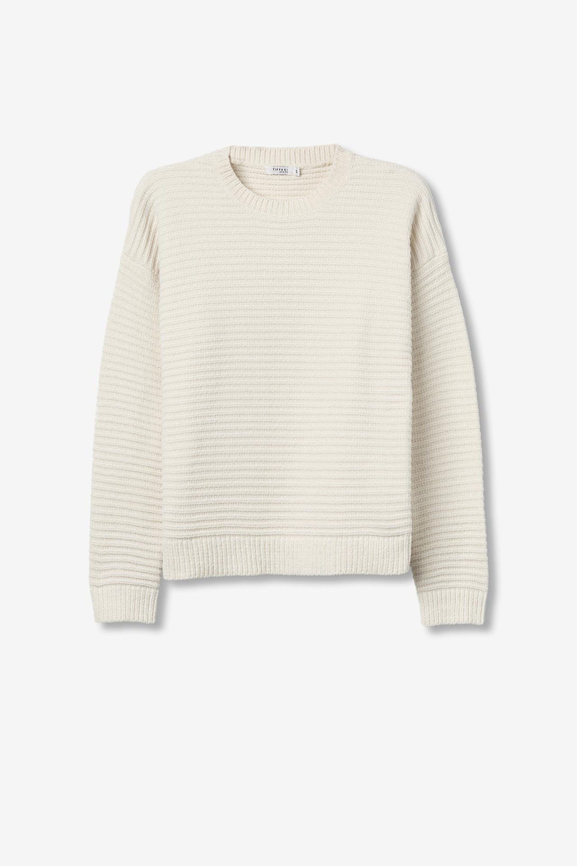 3Brushed knit sweater with ribbed pattern. Round neck. Ribbed cuffs and hem.