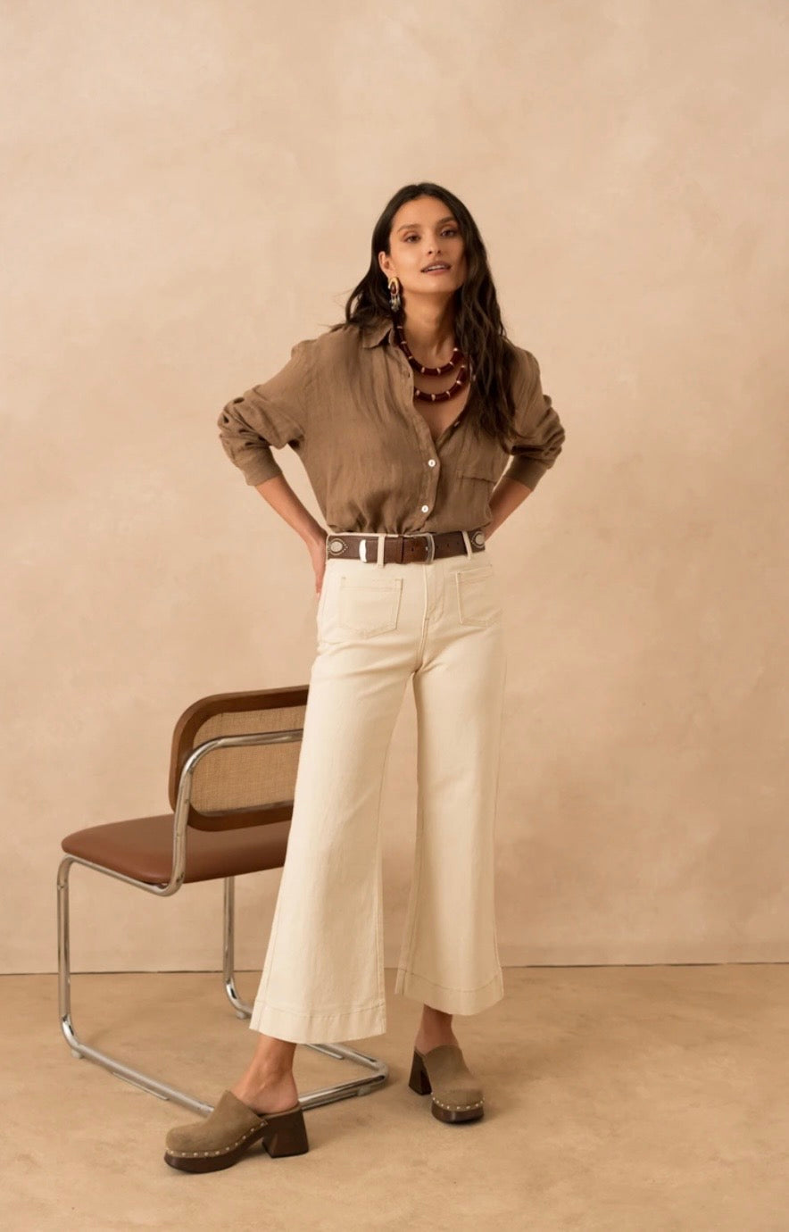 Gasparette Petite Wide Leg Jean - Ecru