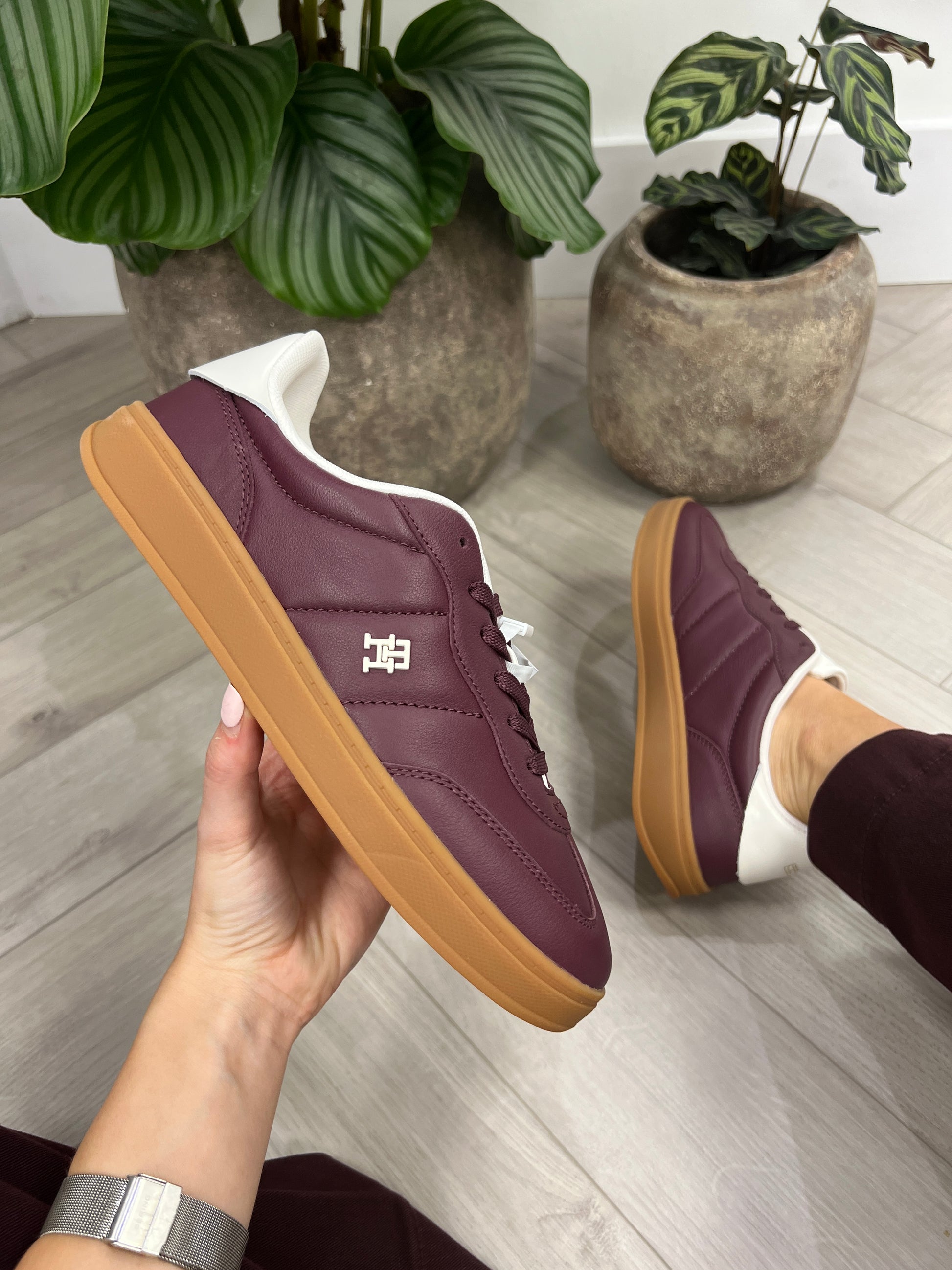 These luxe trainers are crafted from shiny napa leather with a contrast TH monogram plaque on the side for an elevated finish.