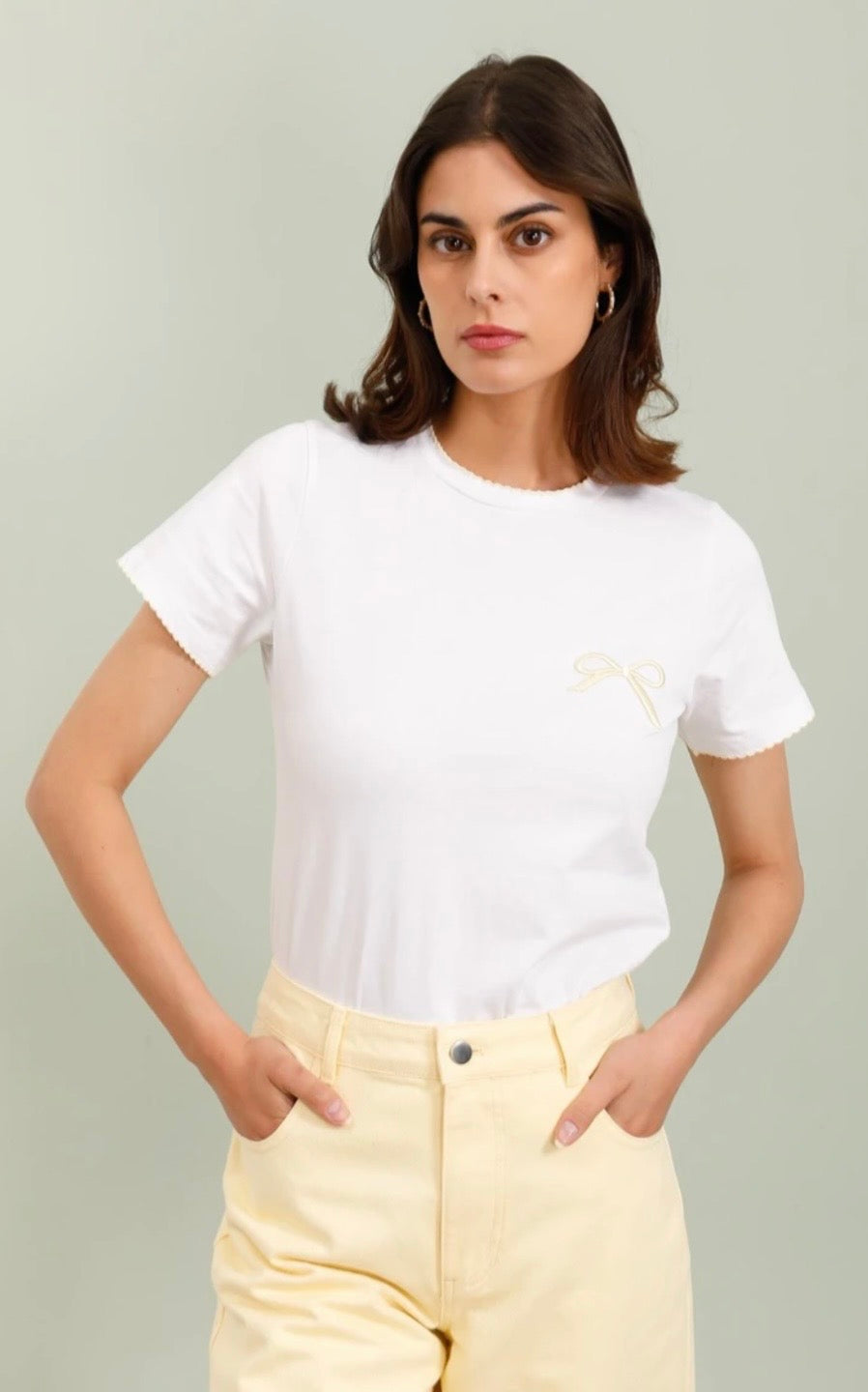 Lila Bow Embroidered Tee - White/Lemon