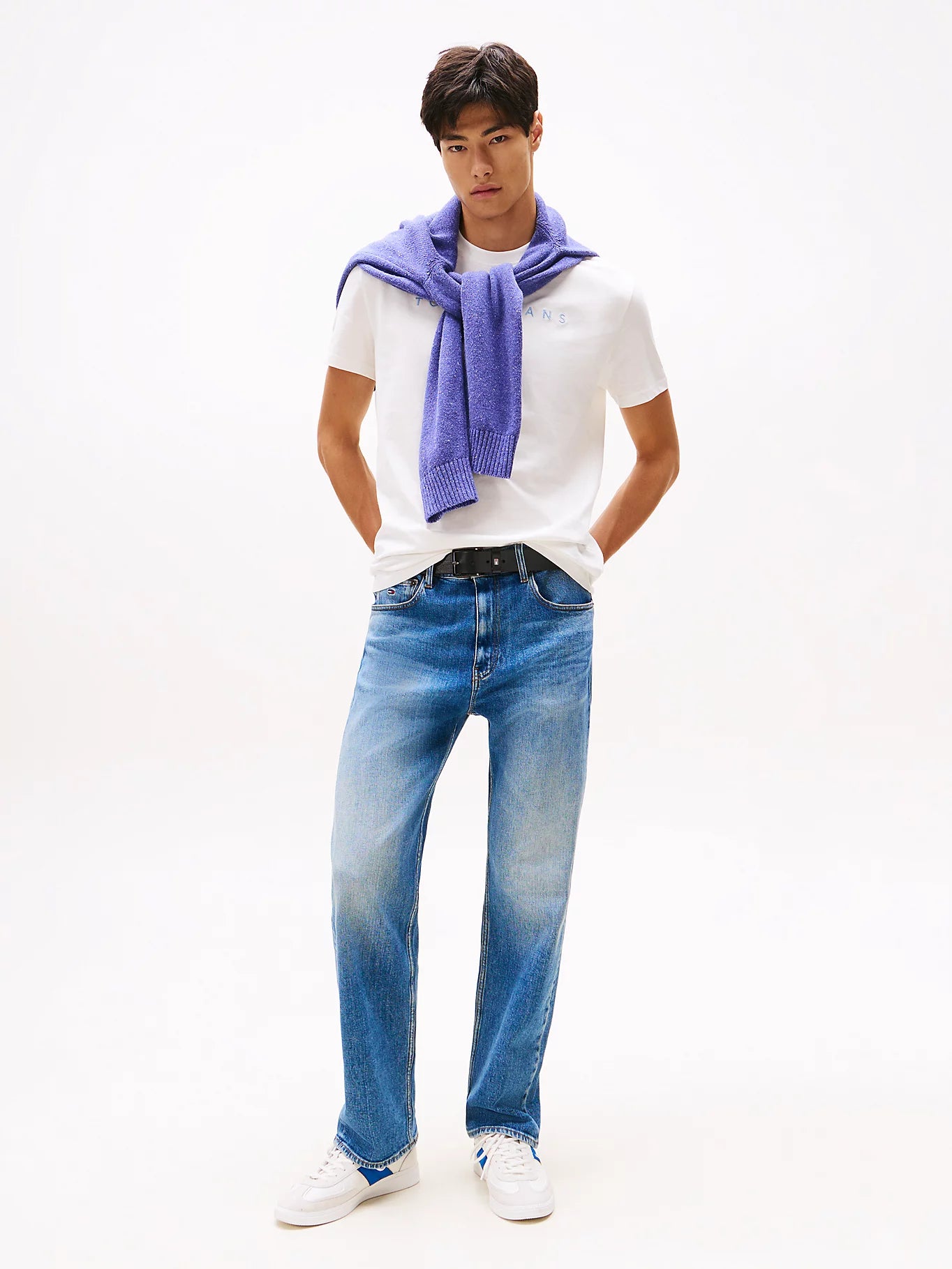 This essential pure cotton T-shirt is a versatile addition to your wardrobe, featuring a regular fit and linear logo embroidery detailing.