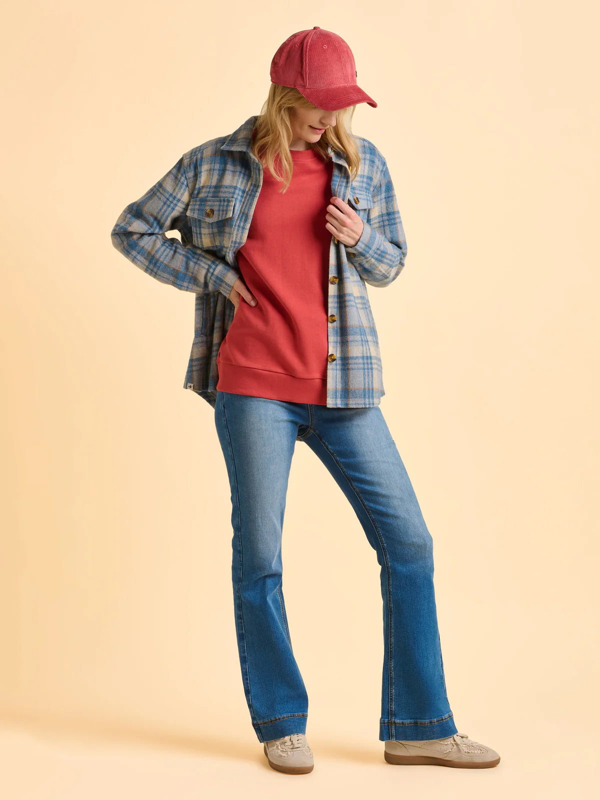 In a soft summer blue with contrast stitching, Our Lumi Jeans are stretchy, comfy, and easy to throw on. Featuring exposed box pockets and a flattering bootcut shape - you just can’t beat classic denim. Style with tan boots and a breezy shirt to really make the most of their lovely shape.