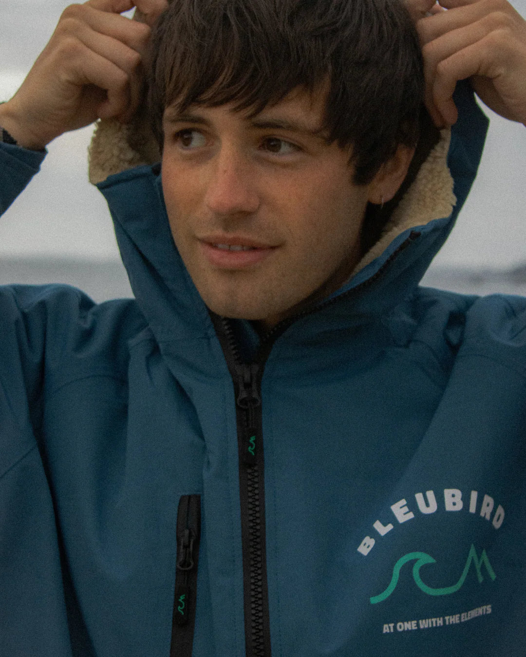 Our Nordic Robe is designed for embracing the elements and is destined to become an essential part of your adventure kit. Whether it's for changing out of your wetsuit after a surf, or for keeping you warm and sheltered before an early morning sea dip, the Nordic Robe has got you covered. We've worked hard to ensure this product is aligned with our environmental ethos. All the fabrics in the robe are made from 100% recycled plastic bottles. The external is treated with PFC-free water resistant coating. It's fully waterproof, with a 100% waterproof membrane lining, so you can stay out in the harshest of weather, and you'll still be kept dry, cosy and warm.