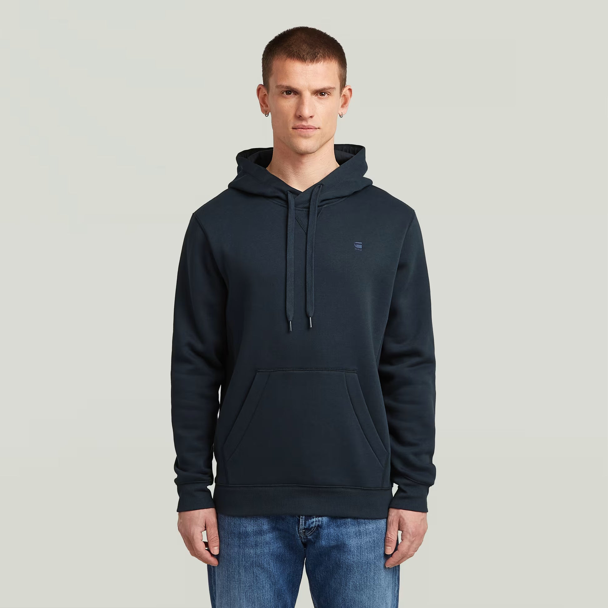 The Premium Core hoodie features a hood with a cross over construction and a ribbed inset piece. The long sleeves have a curved finish, showing a ribbed cuff underneath.