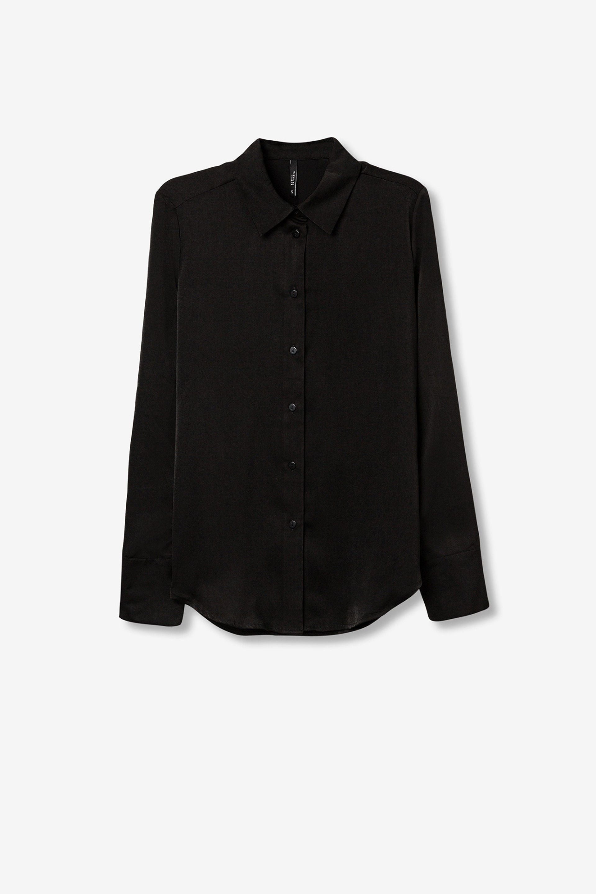 Satin regular fit shirt with classic collar, front button fastening, and long sleeves with buttoned cuffs.