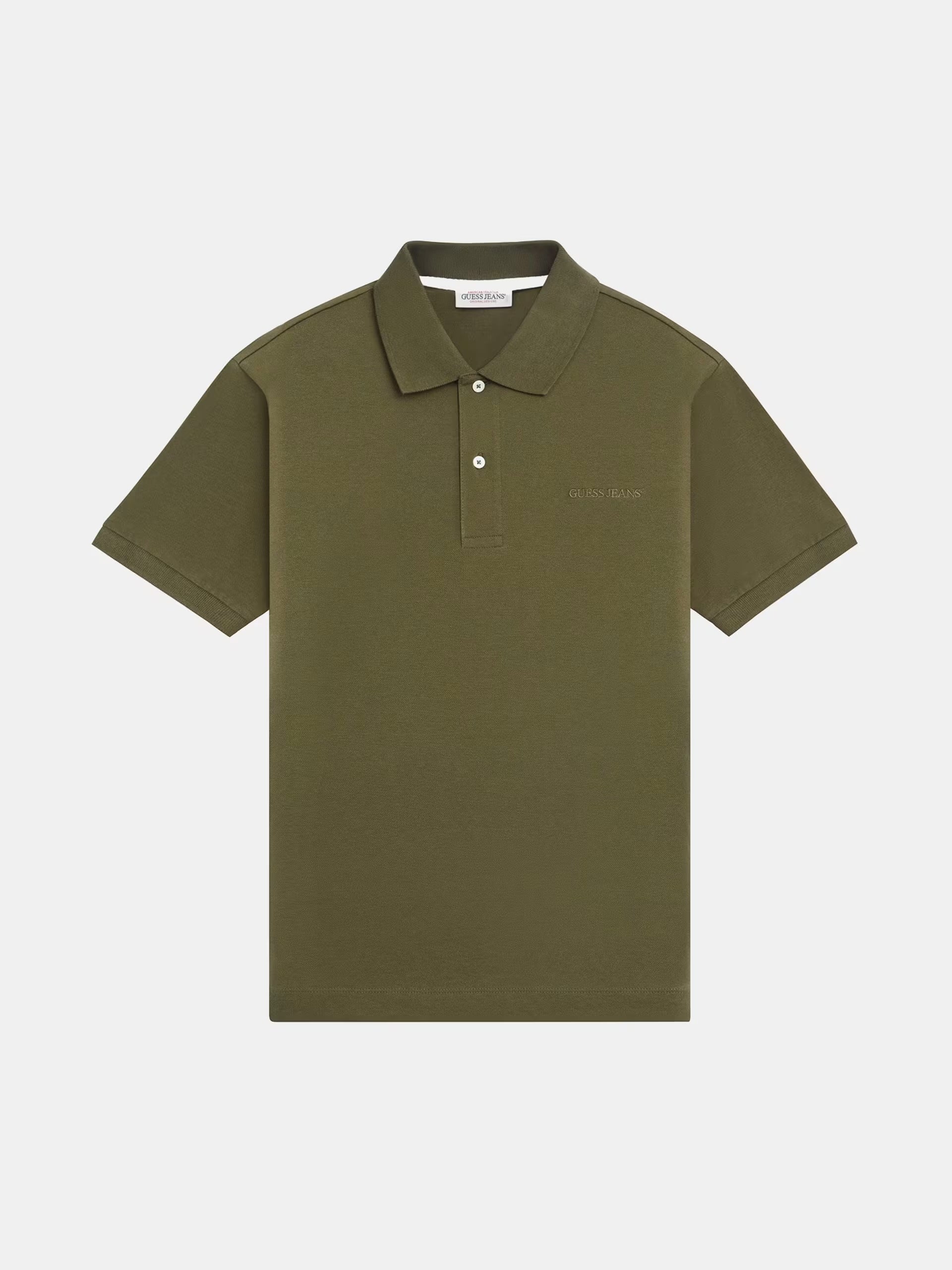 Short Sleeve Embroidered Logo Knit Polo Shirt - Olive Green