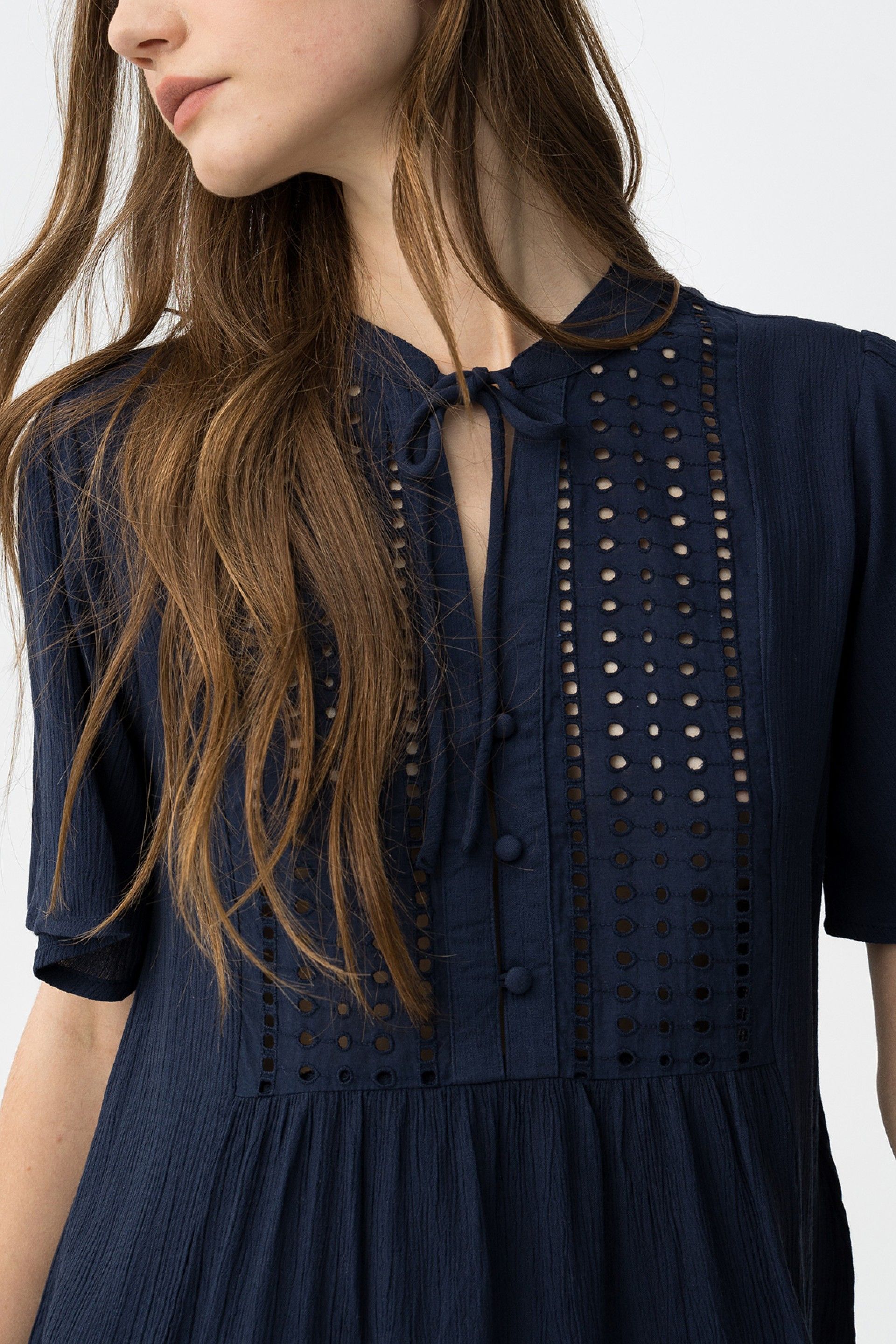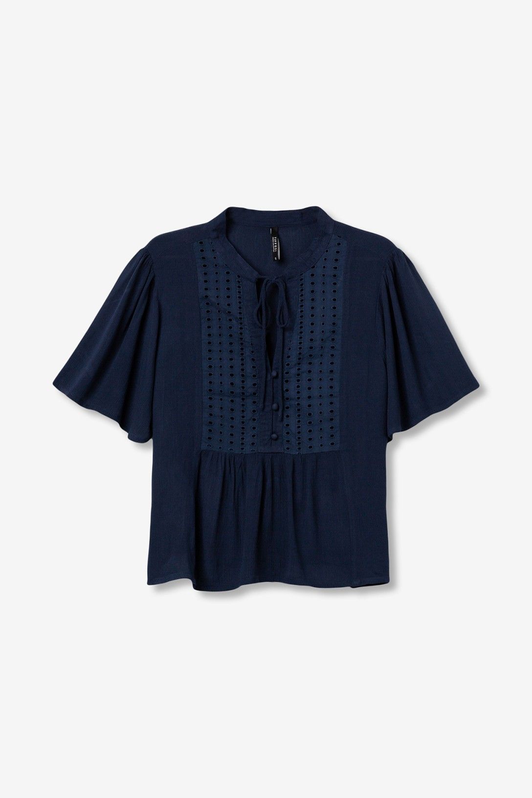 'Siria' Broderie Tie Blouse - Lyons Blue