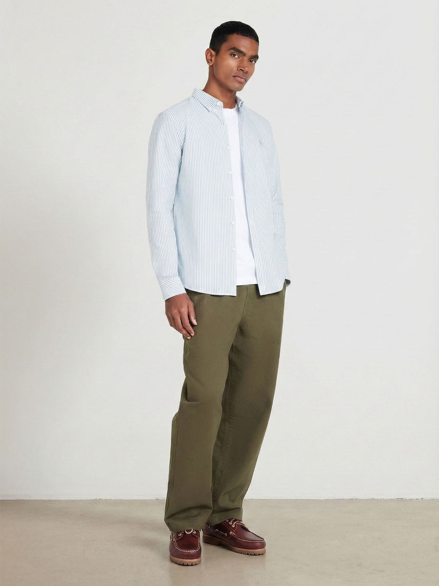 Slim Fit Striped Organic Cotton Oxford Shirt In Green Meadow