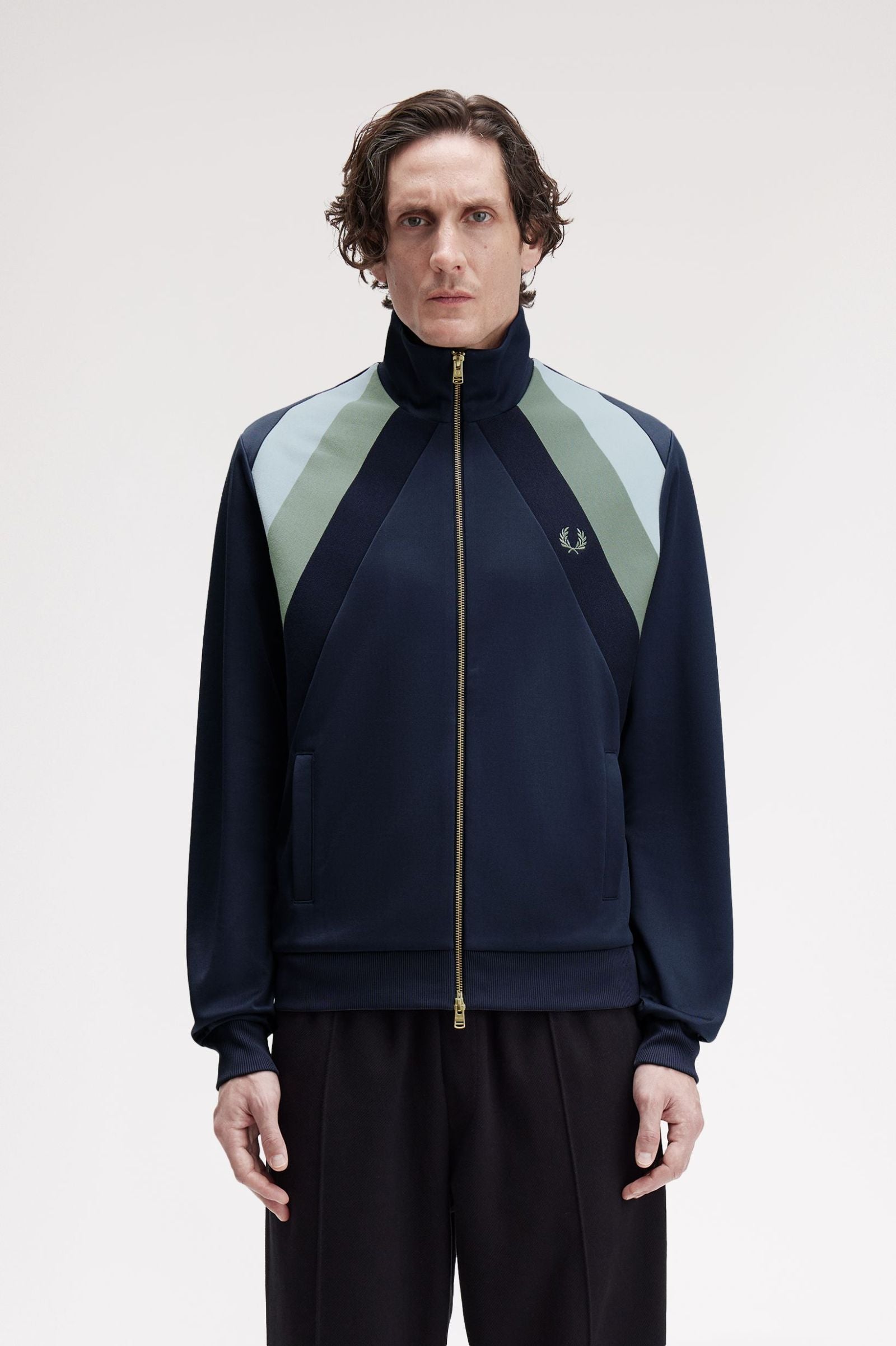 Our tricot track jacket with flat knit panelling to the upper chest.