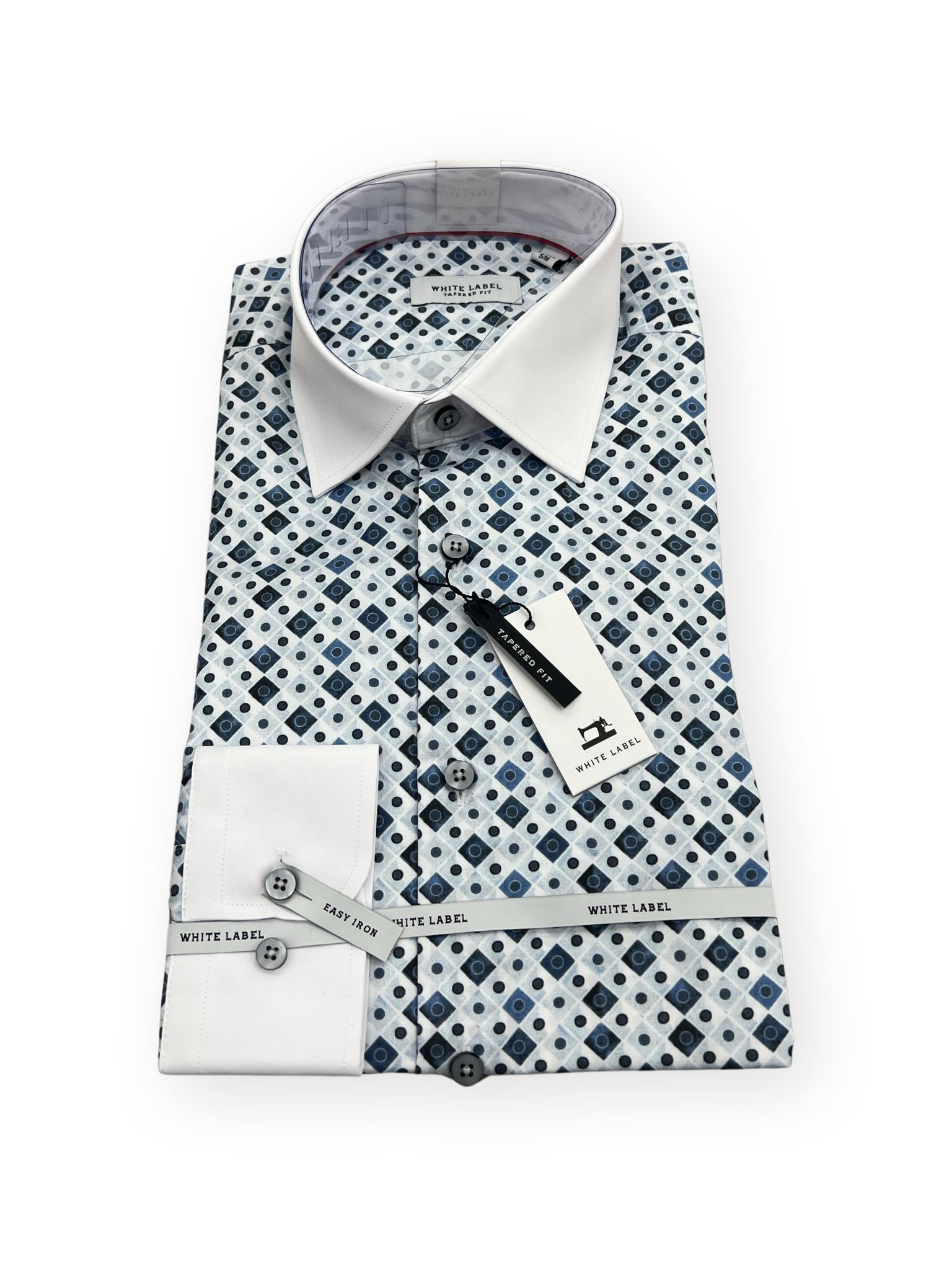 White Label Tapered Diamond Formal Shirt - Blue